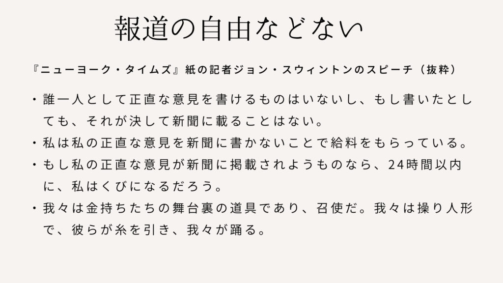 『誰一人として正直な意見を書ける者はいないし、もし書いたとしても、それが決して新聞に載ることはない』