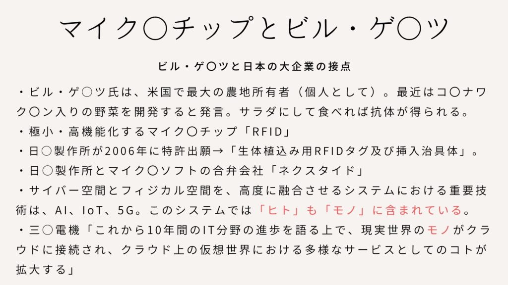ここからは、いわゆる“陰謀論“者でもなく、スピ系でもない、一般の人にも広がりつつある「コ○ナ関連」のことを例にあげて説明していきたいと思います。